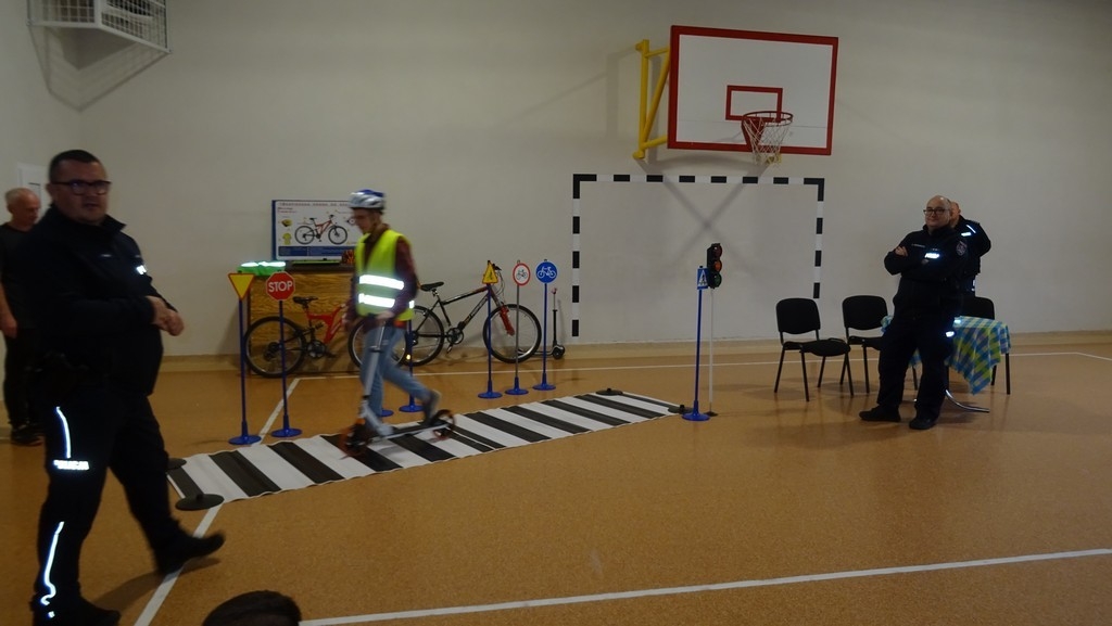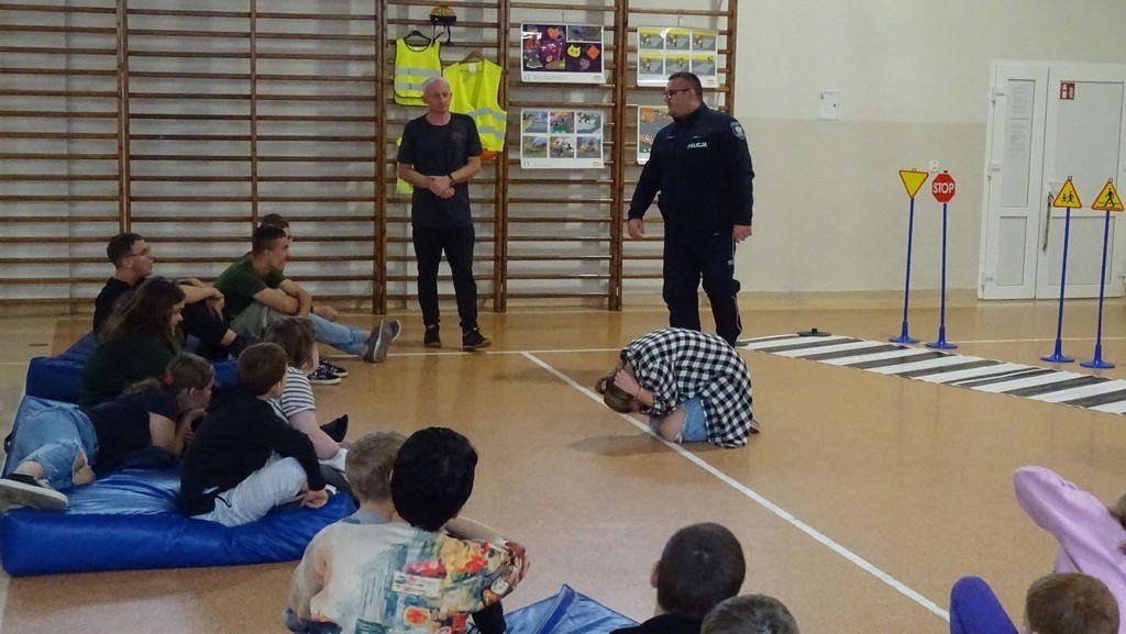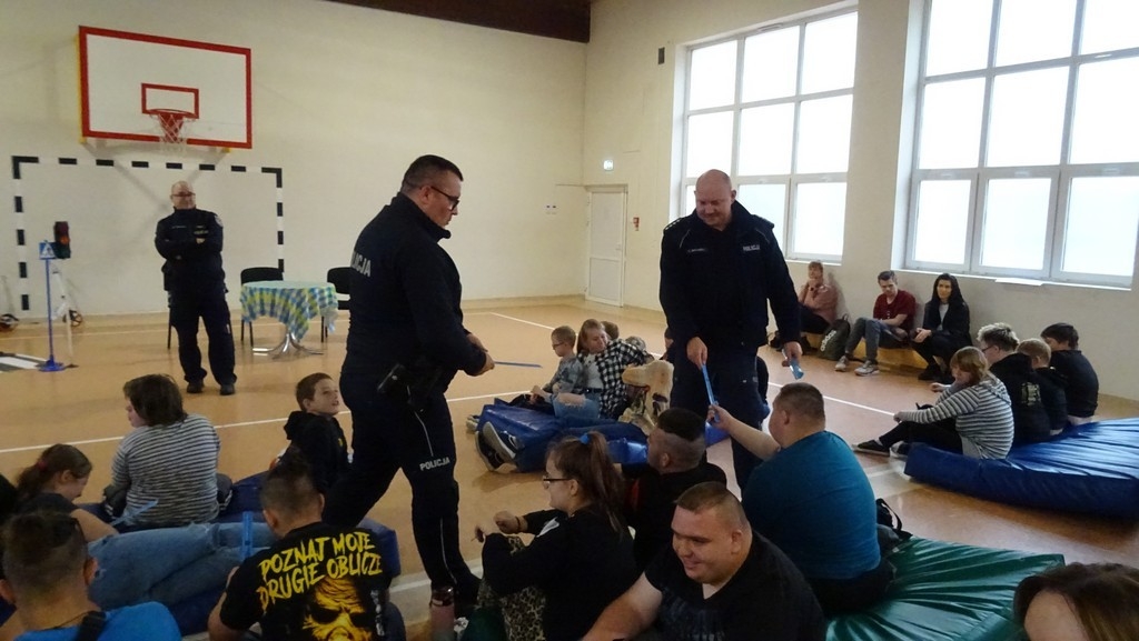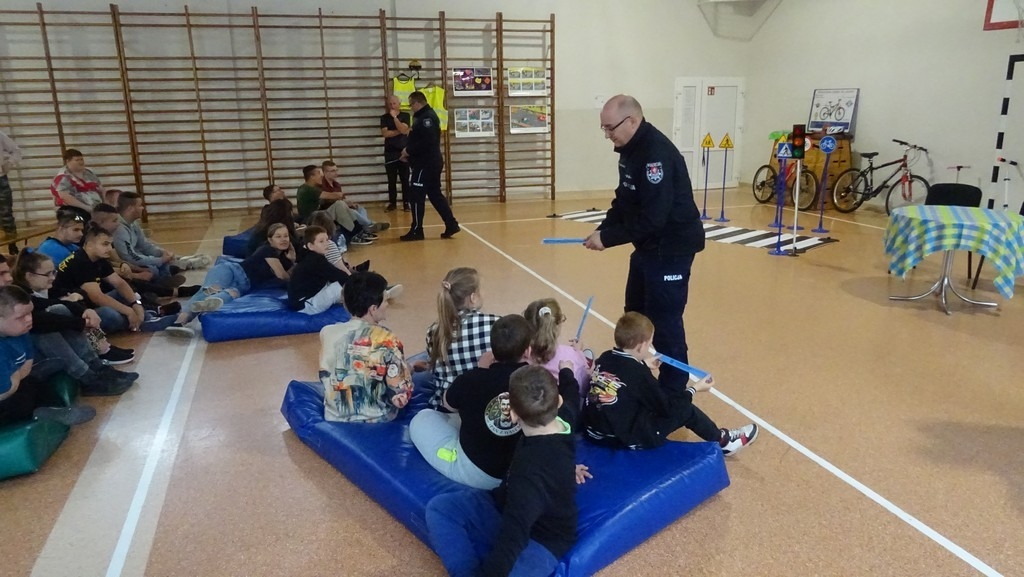 To wszystko sprawia, że na wspólnym spotkaniu z policjantami z Komendy Powiatowej Policji w Golubiu-Dobrzyniu, dzielnicowymi asp. szt. Krzysztofem Smolińskim, asp. Piotrem Sipakiem i asp. Marcinem Muchewiczem zwrócono uwagę uczniów na zagadnienia związane z poruszaniem się po drogach poza obszarem zabudowanym i w obrębie miast, przypomniano dzieciom jak należy przechodzić zgodnie z przepisami po przejściu dla pieszych z sygnalizatorem świetlnym i bez niego. Ukazano dzieciom skuteczność działania i ochronę, jaką dla pieszych daje noszenie materiałów odblaskowych. Panowie Policjanci wręczyli wszystkim uczniom opaski odblaskowe z zaleceniem codziennego stosowania.