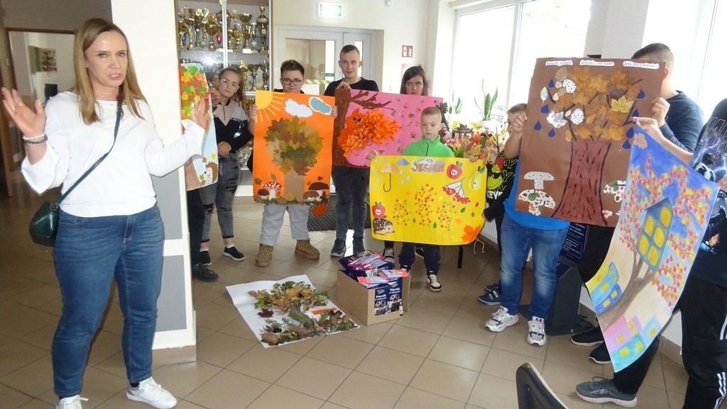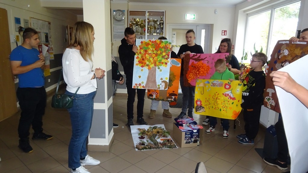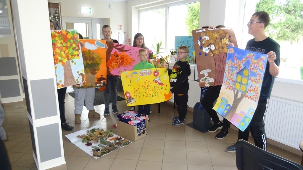 Uczniowie z wielkim zaangażowaniem przygotowywali swoje prace, wykorzystując różnorodne techniki plastyczne – rysunek, malarstwo, wyklejanki, wydzieranki, a także naturalne materiały: liście, kasztany, żołędzie czy suszone kwiaty. Wszystkie prace zachwycały barwami i pomysłowością wykonania.