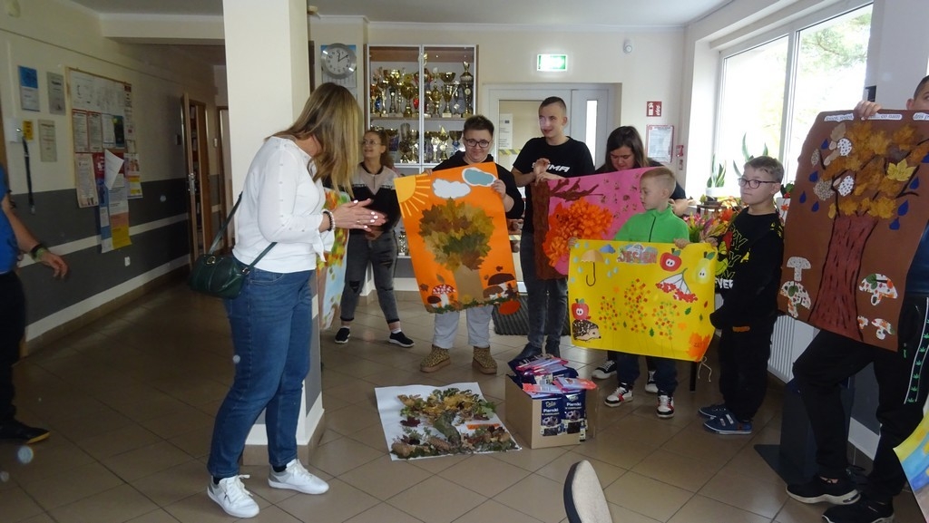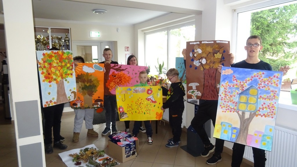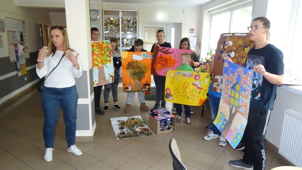 Uczniowie z wielkim zaangażowaniem przygotowywali swoje prace, wykorzystując różnorodne techniki plastyczne – rysunek, malarstwo, wyklejanki, wydzieranki, a także naturalne materiały: liście, kasztany, żołędzie czy suszone kwiaty. Wszystkie prace zachwycały barwami i pomysłowością wykonania.