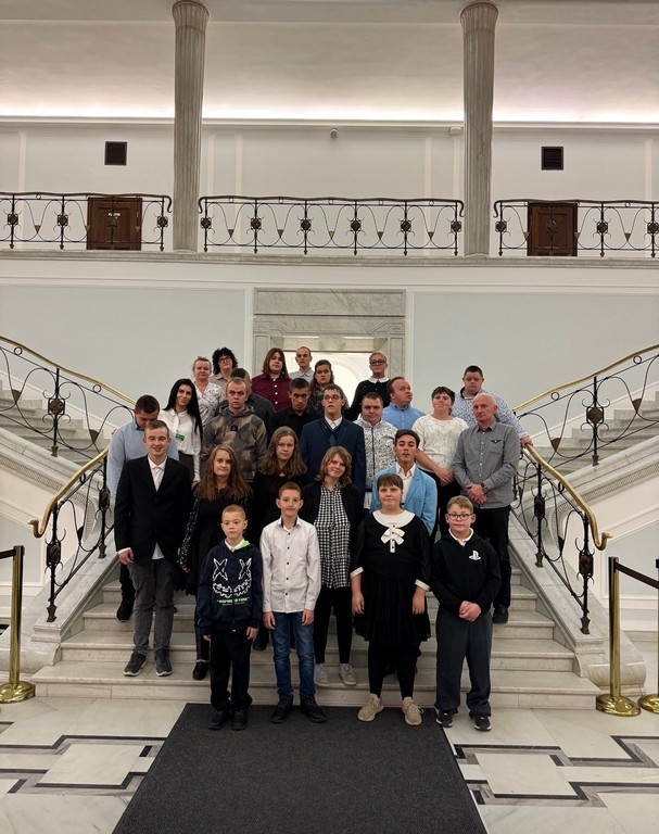 Uczniowie ze Specjalnego Ośrodka Szkolno-Wychowawczego w Wielgiem dnia 20 listopada 2025 roku po raz kolejny odwiedzili Sejm Rzeczypospolitej Polskiej. Wizyta odbyła się na zaproszenie Pani Poseł Iwony Kozłowskiej, która ponownie otworzyła przed młodzieżą drzwi polskiego parlamentu. W wyjeździe uczestniczyli nauczyciele oraz uczniowie ze szkoły podstawowej i szkoły przysposabiającej do pracy, dzięki czemu była to wyjątkowa, wspólna wyprawa pełna wrażeń.