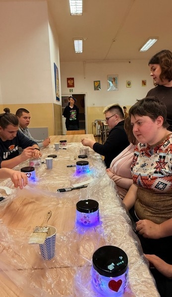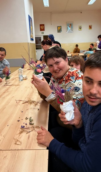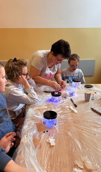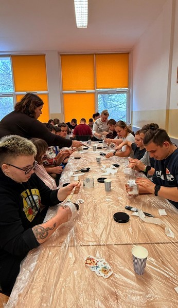 Celem zajęć było rozwijanie kreatywności, sprawności manualnej oraz kształtowanie poczucia estetyki. Uczestnicy pracowali etapowo – przygotowywali bazę pracy, dobierali materiały dekoracyjne, a następnie komponowali i mocowali elementy ozdobne.